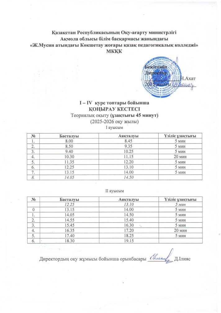 2025 2026 оқу жылына арналған қоңырау кестесі