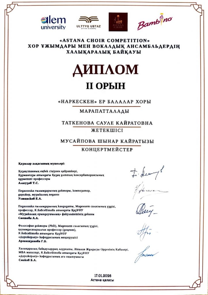 ASTANA CHOIR COMPETITION – ХАЛЫҚАРАЛЫҚ ХОР ӨНЕРІНДЕГІ ЖЕТІСТІК