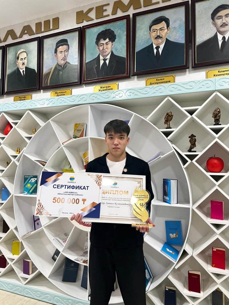 Жыл қорытындысы нәтижесінде Jas Aqmola облыстық сыйлығының «Жыл волонтері – 2025» номинациясы Ж.Мусин атындағы Көкшетау жоғары қазақ педагогикалық колледжінің Филология бөлімінің студенті Жағупар Даниал Қуанышбекұлына табысталды. Сондай-ақ оған 500 000 теңге көлемінде ақшалай сертификат берілді.