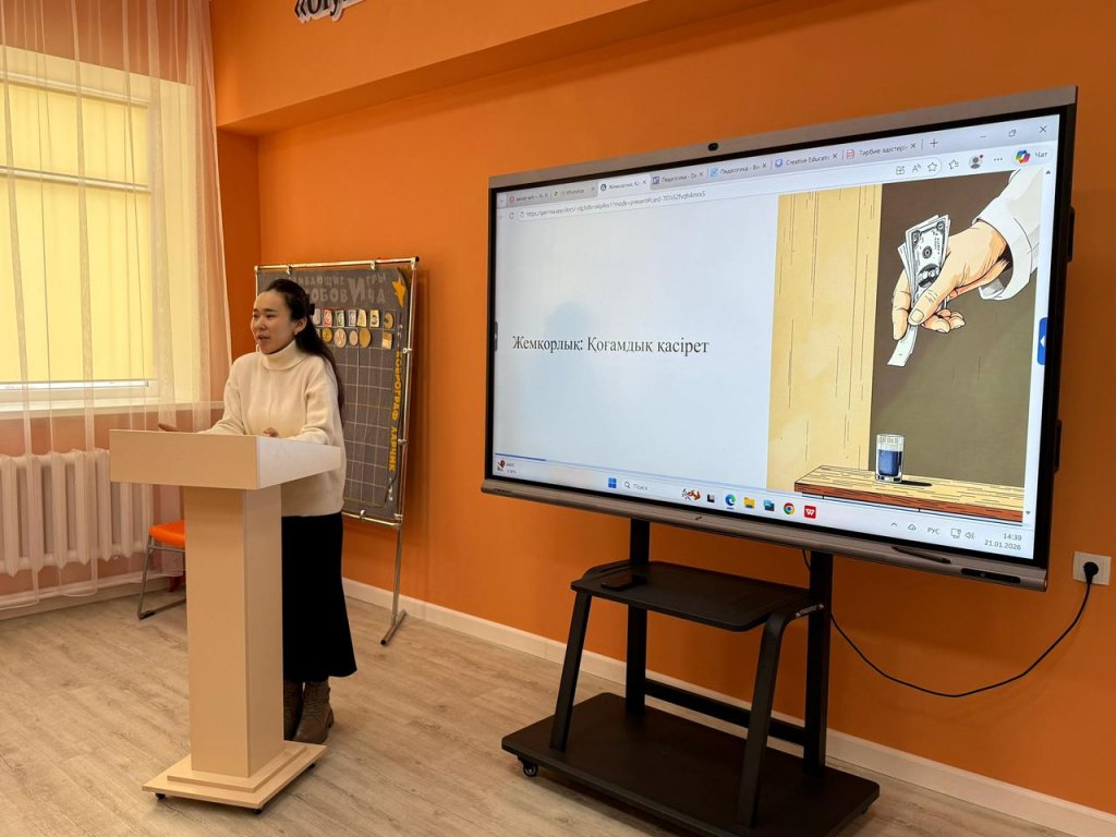 «Саналы ұрпақ» жобасы аясында Ж.Мусин атындағы Көкшетау жоғары қазақ педагогикалық колледжінің Л-31 ҚБ тобында «Біз жемқорлыққа қарсымыз!», «Жемқорлыққа жол жоқ!» тақырыптарында тәрбие сағаты өткізілді.